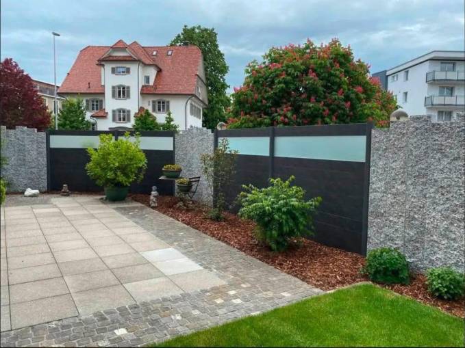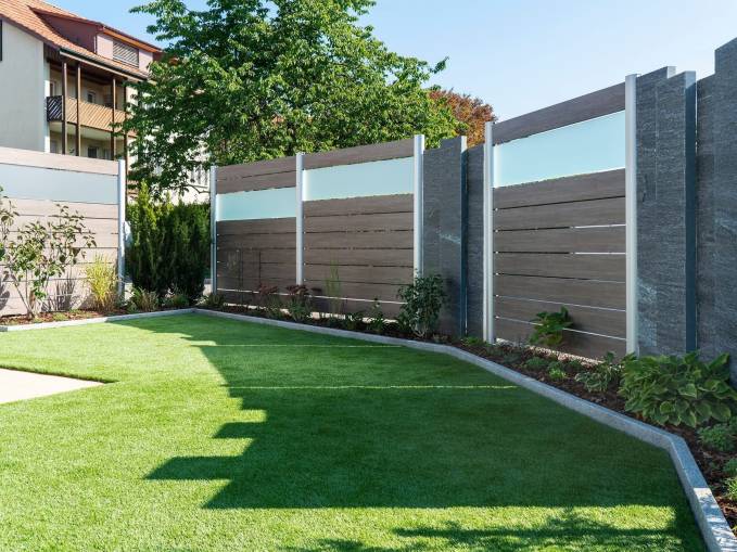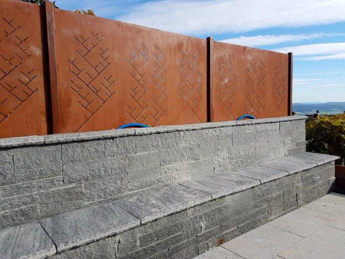 Éléments pare-vue en alu, acier, béton & pierre naturelle – pour plus d’intimité et une conception harmonieuse du jardin.