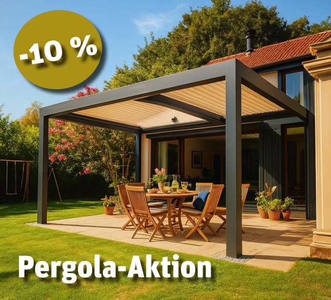 Draussen wohnen, wie Sie es lieben: stilvoll, geborgen, einzigartig. Profitieren Sie jetzt von 10% Rabatt auf Pergolen.