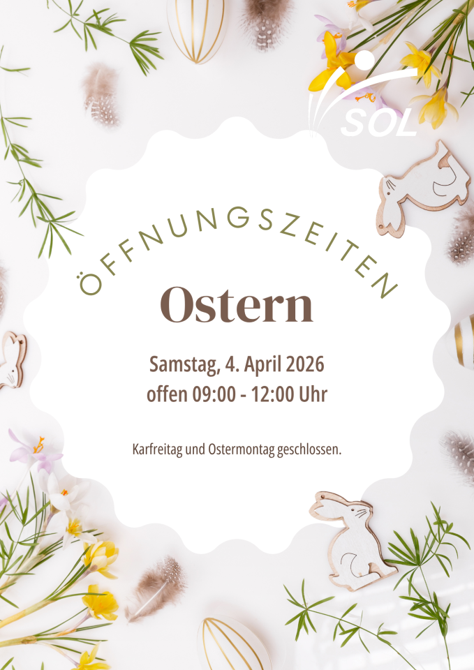 Wir wünschen Ihnen schon jetzt frohe Ostern und eine entspannte Frühlingszeit! Euer SOL-Team