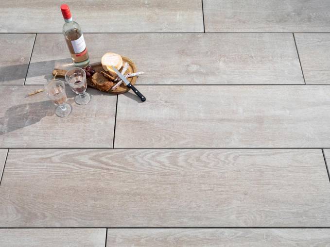 Notre dalle Geoceramica Weathered Oak est pratiquement impossible à distinguer du bois naturel. Tous les noeuds, toutes les fissures et tous les dégradés de couleur qui donnent au bois son caractère se retrouvent dans cette conception.